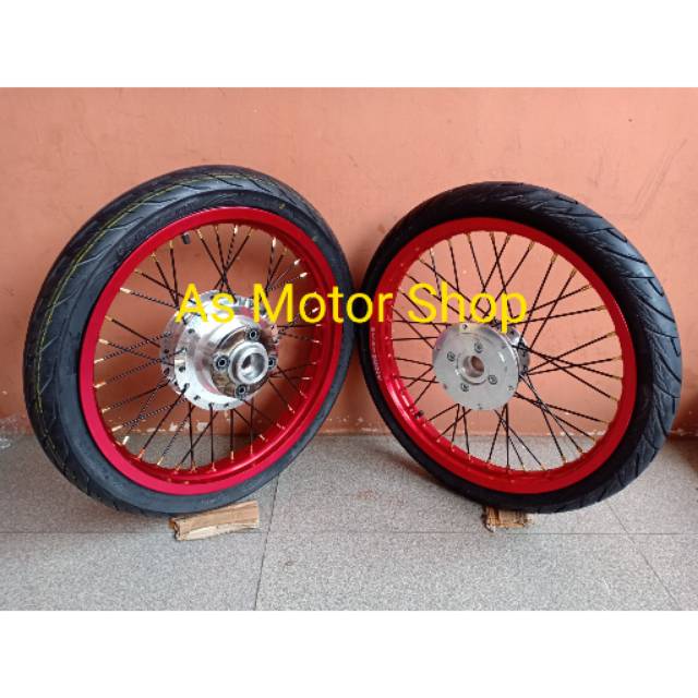 Velg Paketan Rossi Ring 17 Tapak Lebar 185 215 Plus Jari Jari 2pcs Dan Ban Luar Uk 80 80 90 80 Shopee Indonesia